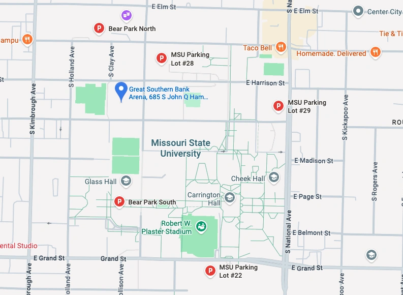 We recommend allowing for additional time before your event for parking and then walking to the venue. Springfield traffic is typically busier around Great Southern Bank Arena in during larger events.